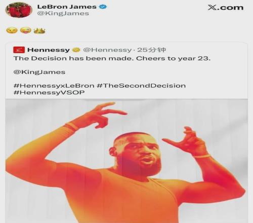 詹姆斯正式宣布,决定将自己的天赋带给著名白兰地品牌轩尼诗。