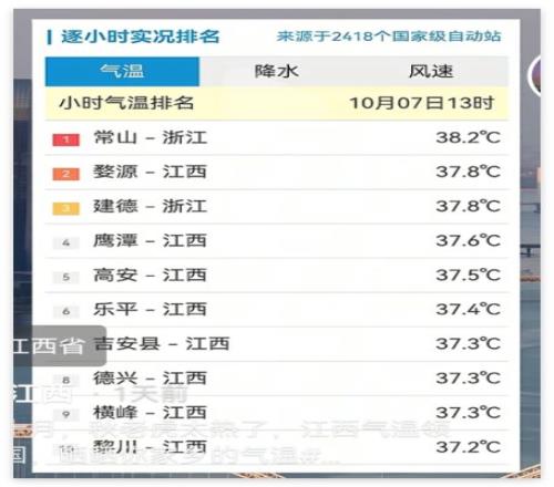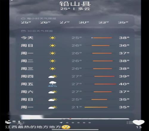 但它依然不是在江西最热的县,铅山县可能马上要冲破40度了。