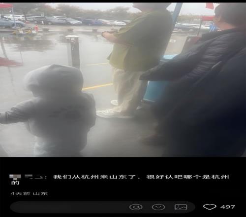 一位从杭州去山东旅游的网友,发现自己的短袖与别人的羽绒服格外突兀。