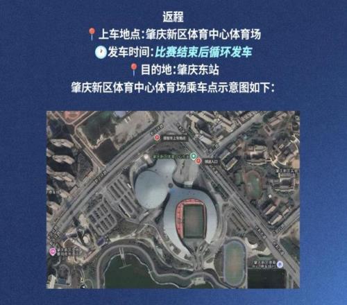 肇庆新区体育中心也是一个专业足球场,只是主队现场观赛球迷人数减少。深圳新鹏城俱乐部付出人力物力财力和各路资源,为了方便乘坐高铁或动车抵达的球迷前往观赛,俱乐部特别安排由肇庆东站往返肇庆新区体育中心体育场的免费接驳车服务,最大限度地让球迷为主队加油呐喊。