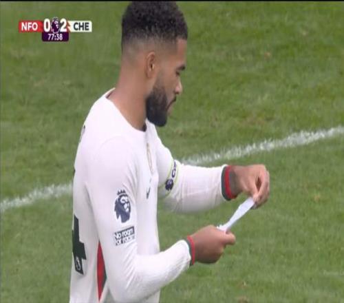 旺仔登场时,将一张纸条交给里斯-詹姆斯,全队传阅,执行主帅的战术部署。