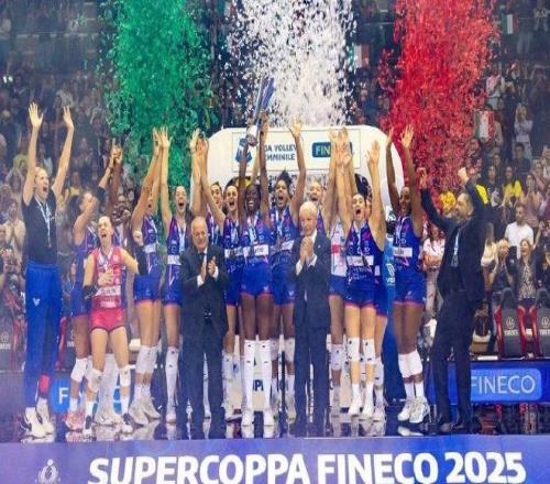 10月18日,2025意大利女排超级杯:米兰3-2(18-25、25-22、25-20、13-25、15-12)力克科内利亚诺,结束了后者自2019年以来的霸业并夺得俱乐部首个超级杯。埃格努30分(决胜局独得10分)荣膺MVP、拉涅尔14分,哈克32分、西拉11分、朱婷10分(37扣9中1拦)。