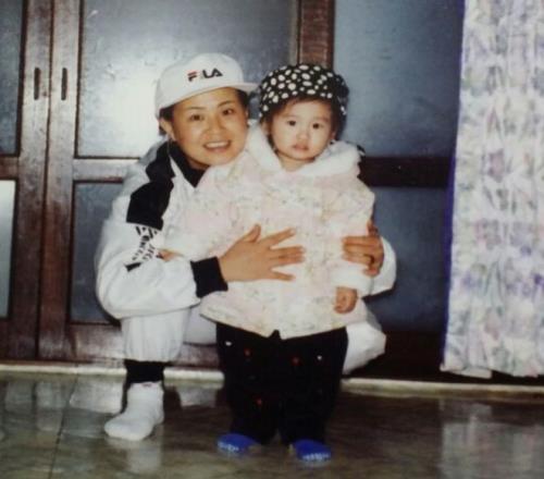 蔡侑玎小臂上的文身,便是自己年幼时与母亲的合照。