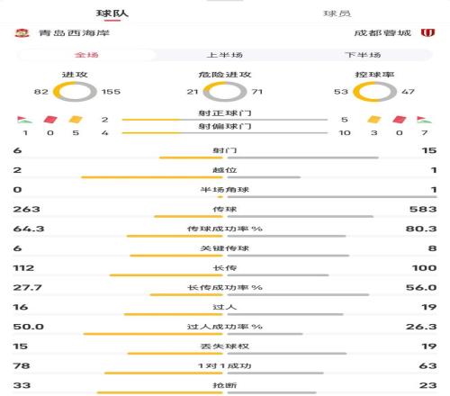 雷速体育10月26日宣 今晚刚刚结束的中超第28轮的一场焦点战中,青岛西海岸2-2战平成都蓉城。本场比赛只拿一分的蓉城,没能利用好下午海港输球后(60分)留下的优势。比赛结束后的实时积分榜上,蓉城59分暂列第二,如果随后申花(57分)取胜,积分将反超蓉城登上第二位。中超争冠进入白热化阶段。