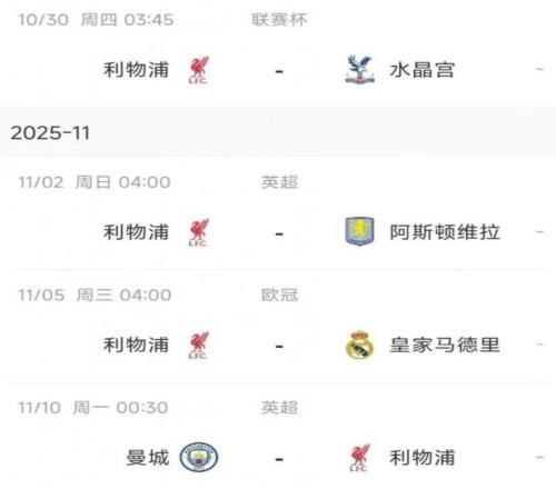 要知道四连败可是利物浦多年来没遭遇到过的情况了,接下来,他们会遇到水晶宫的挑战。这可是斯洛特苦主,对此,这个主帅可是太熟悉了。打完水晶宫后(联赛杯),随后两轮英超他们会遇到维拉和曼城的挑战。阿斯顿维拉在撤下了埃利奥特后,打出五连胜态势发挥不俗;曼城也是慢慢回到正轨的。