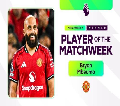雷速体育10月28日宣 曼联前锋姆伯莫当选英超第9轮最佳球员。这是曼联球员连续第二周斩获该奖项——其队友马奎尔此前刚拿下第8轮最佳球员。