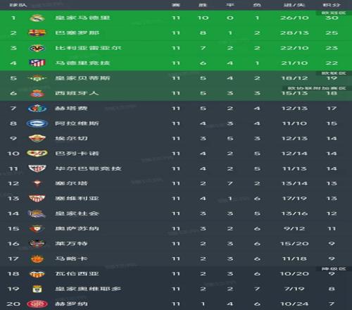 北京时间11月4日,随着皇家奥维耶多0-0奥萨苏纳的比赛结束,西甲第11轮所有比赛全部结束,让我们一起看看最新积分榜变动!