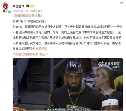 大家很清楚,詹姆斯本赛季开赛以来一直没有出战比赛。因为他的身体有伤病,到现在都还没有恢复。而目前根据权威媒体的最新报道,接下来詹姆斯复出的时间也开始提上议程了。他现在正在进行个人的训练,接下来将会参与5对5的实战对抗训练,但不会跟随球队去出席后面的比赛,而是留在球队当中做好康复的准备。