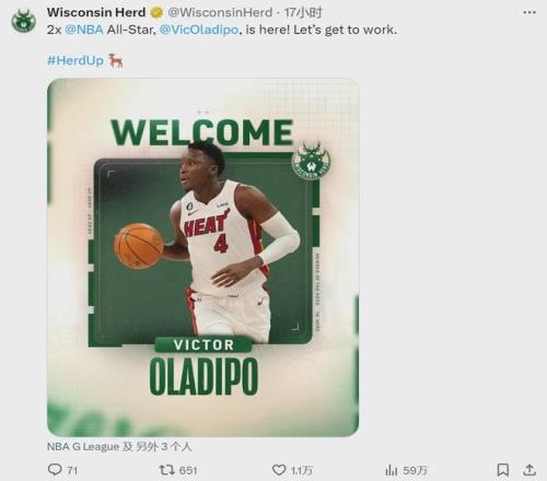 雄鹿发展联盟附属球队威斯康星牧群队宣布:正式签约前NBA全明星后卫奥拉迪波。本赛季奥拉迪波跟随广州龙狮参加了NBA季前赛,可惜并未得到一份NBA合同。奥迪没有放弃NBA梦想,此次征战发展联盟也是为了重返NBA。
