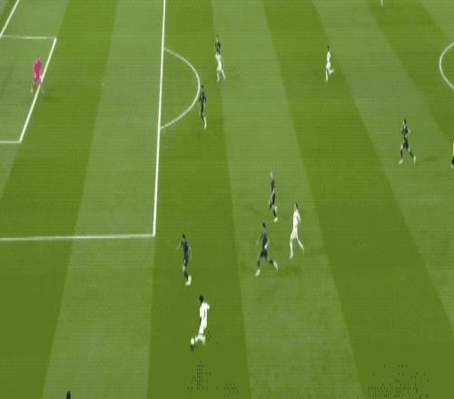 第50分钟,维尼修斯传中,罗德里戈假射真传,贝林厄姆的挑射,稍稍高出。