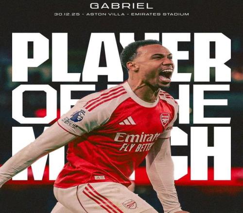 在今天凌晨进行的英超第19轮比赛中,阿森纳主场4-1击败阿斯顿维拉,赛后,加布里埃尔被阿森纳评为本场比赛队内最佳球员。