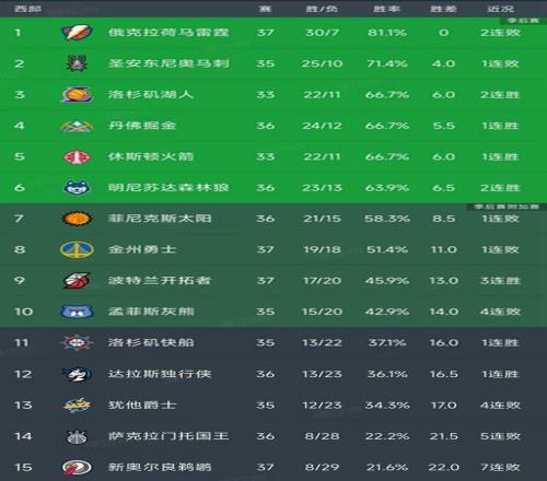 西部最新积分榜