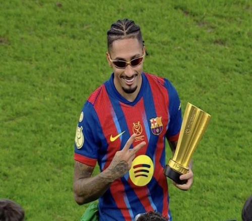 2026年西超杯决赛,巴塞罗那3-2击败皇家马德里夺冠,此役上演梅开二度的拉菲尼亚当选全场最佳球员。