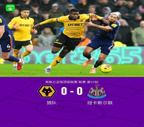 北京时间1月18日英格兰足球顶级联赛第22轮,狼队主场对阵纽卡斯尔联。双方表现平平,吉马良斯、马特乌斯-马内造险。最终比分狼队 0-0 纽卡斯尔联。
