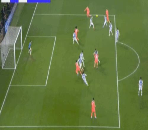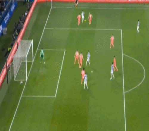 第7分钟,奥尔莫前场抢断,费尔明禁区外推射破门,不过皇家社会球员集体投诉奥尔莫犯规在先。