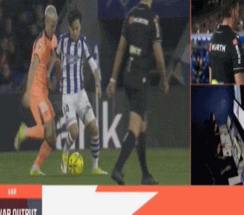 裁判回看VAR后认定奥尔莫确实对久保建英犯规在先,因此进球被判无效。