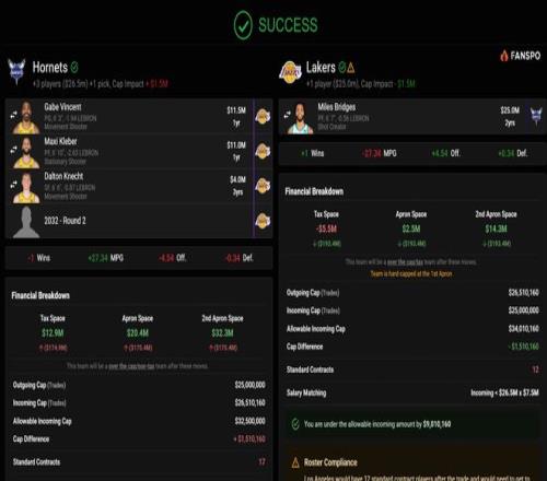 根据湖媒的分析,湖人队交易小桥的筹码大概率为盖布-文森特、马克斯-克勒贝尔、一个未来次轮签。