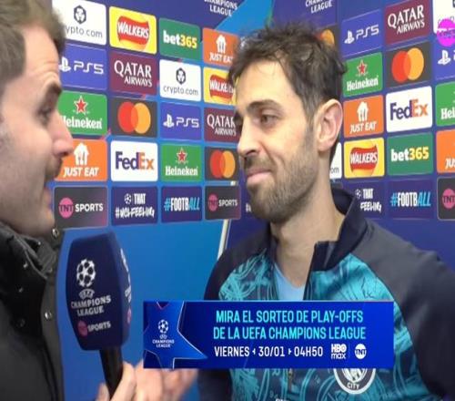 欧冠联赛阶段第8轮,曼城主场2-0战胜加拉塔萨雷,曼城队长伯纳多-席尔瓦赛后接受了TNT体育墨西哥频道的采访。