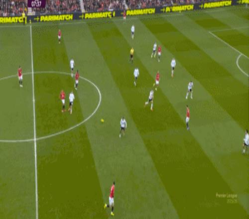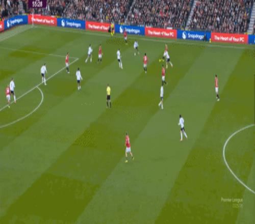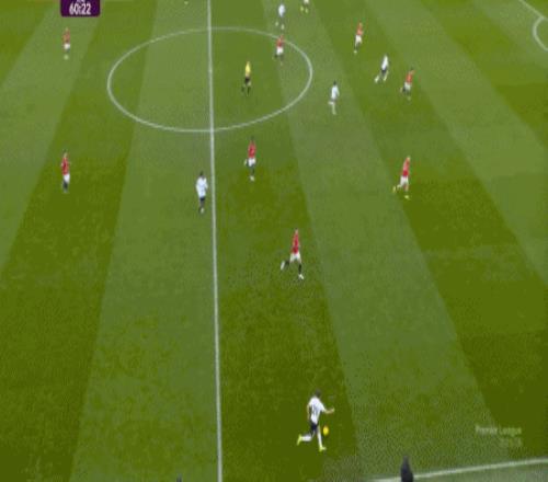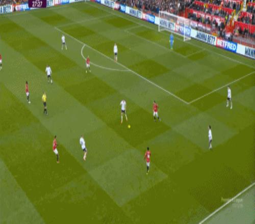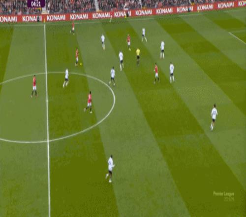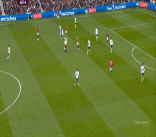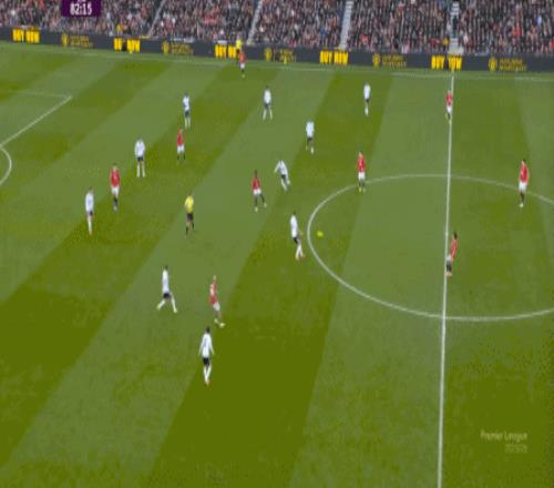 这显然是找对进攻方向的合理收获,但是,曼联的防守压力并未因此减轻,富勒姆在这一侧承压,但也能在这一侧直接向前,不管是在丢球前: