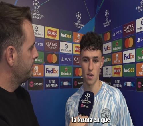 本赛季欧冠联赛阶段第4轮,曼城主场4-1战胜多特蒙德。福登接受了TNT体育的赛后采访。感谢你接受采访,恭喜今晚的表现!你是不是已经很久没有在一场比赛中打进两球了?是的,我真的很