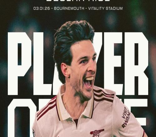 北京时间1月4日凌晨,英超联赛第20轮,阿森纳在客场3-2战胜伯恩茅斯。此前,阿森纳官方宣布,中场球员赖斯当选为此役队内最佳球员。本场比赛,赖斯首发出战并打满全场,贡献了2个进球。