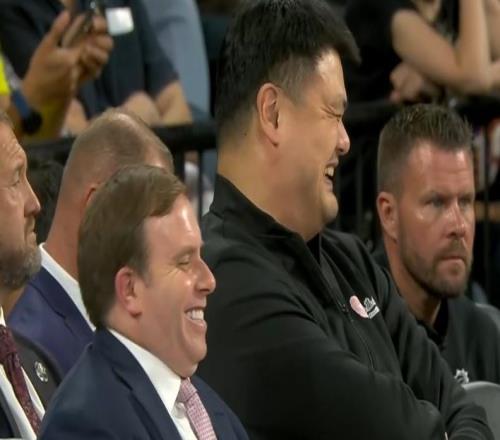 雷速体育10月13日宣 NBA中国赛,篮网111-109战胜太阳。本场比赛,姚明在场边贡献了经典的大笑表情包,值得一提的是,坐在姚明场边跟他相谈甚欢的人,是独行侠的老板帕特里克·杜蒙特