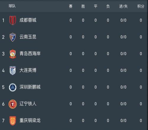 距开赛36天!中超积分榜:蓉城天胡开局,申花垫底,海港国安5分