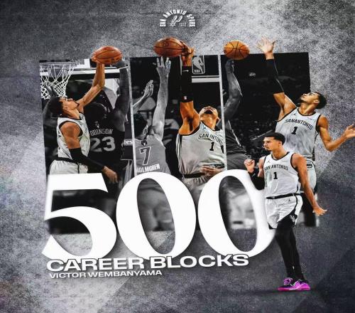 文班亚马500盖帽里程悲:历史第2年轻+第4快无缘四杀联盟第一