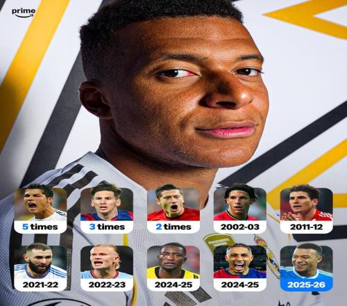 欧冠联赛阶段第8轮,皇家马德里客场对阵本菲卡,上半场姆巴佩破门为皇马取得领先,至此,姆巴佩本赛季欧冠已打入12球,成为欧冠联赛历史上第10位单赛季进球12+的球员。姆巴佩成为欧冠