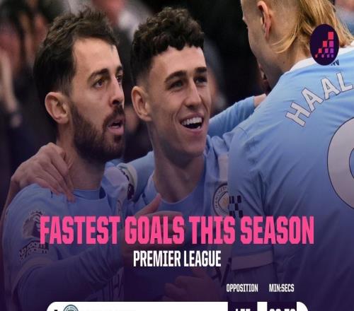 英超第13轮,曼城主场对阵利兹联,开场第1分钟福登破门为曼城取得领先,据统计,这是本赛季英超最快进球,也是首粒在开场第1分钟打入的进球。本赛季英超最快进球排行1 福登 vs利兹联